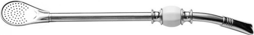 Bombilla LAGRIMA bílá (22 cm) + štěteček a krabičkaBombilla vyrobená z nerezové oceli s dvěma chladícími kroužky a bílým kamenem.Estetický model zdobený drážkami na náustku a dvěma chladícími kroužky, mezi které je vložen bílý kámen. Má odnímatelné sítko (filtr), díky čemuž se snadno udržuje čistá. Čisticí štěteček s bílou krabičkou je součástí balení. Omývat vodou a saponátem a poté použít štěteč...