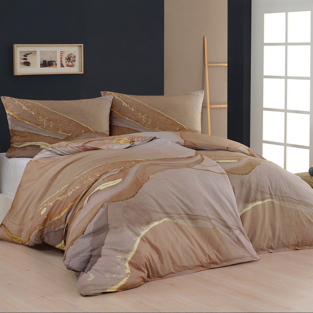 Bavlněné povlečení Riana vnese do vaší ložnice jedinečný styl a eleganci. Abstraktní vzor kombinuje paletu hnědých a šedohnědých tónů protnutých zlatavou linkou. Povlečení je vyrobeno ze 100% prvotřídní bavlny a přináší nejen estetickou hodnotu, ale i výjimečný komfort. Povlak na přikrývku je z obou stran stejný, povlak na polštář zachycuje z každé strany trošku jiný motiv. Povlečení je opatřeno ...