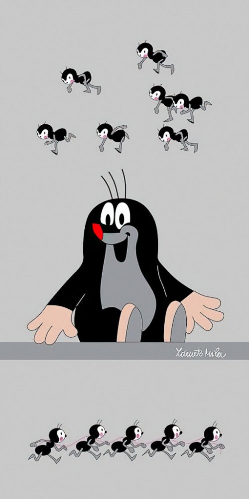 Dětská plážová osuška s motivem pohádkového Krtečka s mravenečky na šedém podkladu. Osuška je z lícové strany s potiskem, z rubu má jemné froté smyčky bez potisku. Osuška je vyrobena ze 100% bavlny.