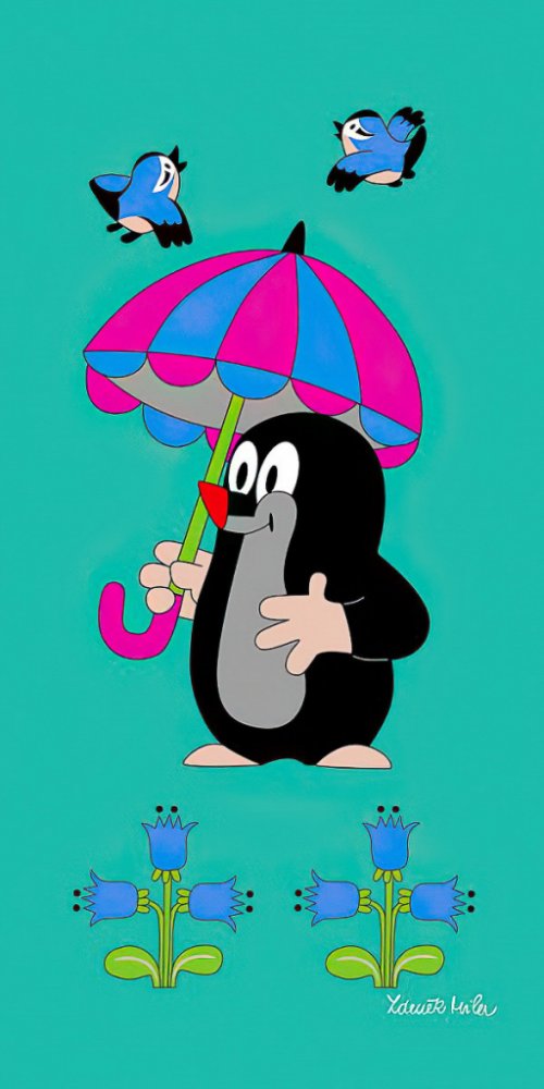 Osuška Krtecek je vyrobena ze 100 % bavlny s jemně střiženým froté = velur. Jemný sametový povrch osušky je mimořádně hebký na omak a výborně savý. Osuška má barevný potisk pouze z jedné strany. Plážová osuška je vyrobena v gramáži 420 /m2.Praní: 60°CRozměr: 75 x 150 cm