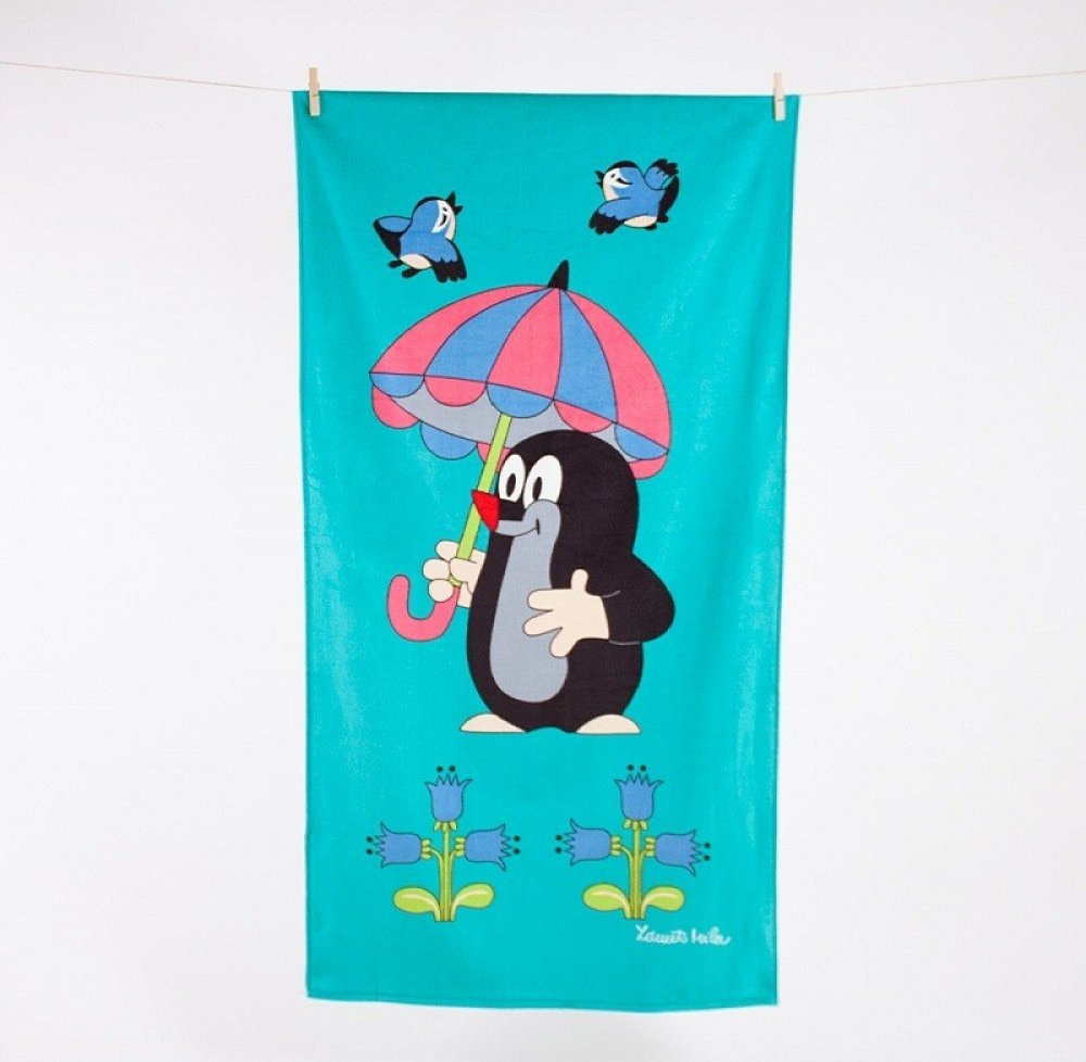 Matějovský dětská plážová osuška Krtek a paraplíčko 70 x 150 cm tyrkysová