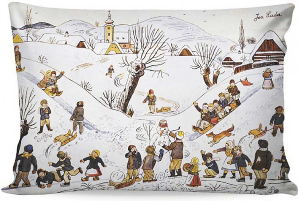 Luxusní bavlněný povlak Josef Lada - Dětské hry v zimě