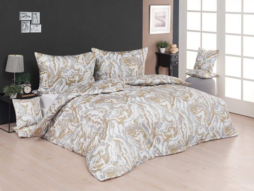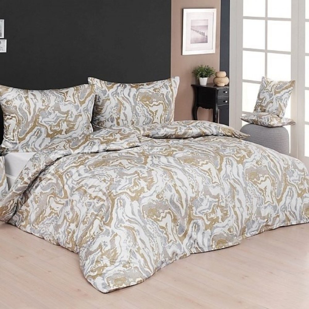 S ložním povlečením Fiona bude vaše ložnice svěží a zcela originální. Nadčasový mramorový vzor v odstínech šedé, okrové a krémově bílé se stane ozdobou každého moderního interiéru.Povlak na polštář i na přikrývku je z obou stran stejný, povlečení je opatřeno komfortním zipovým uzávěrem.
