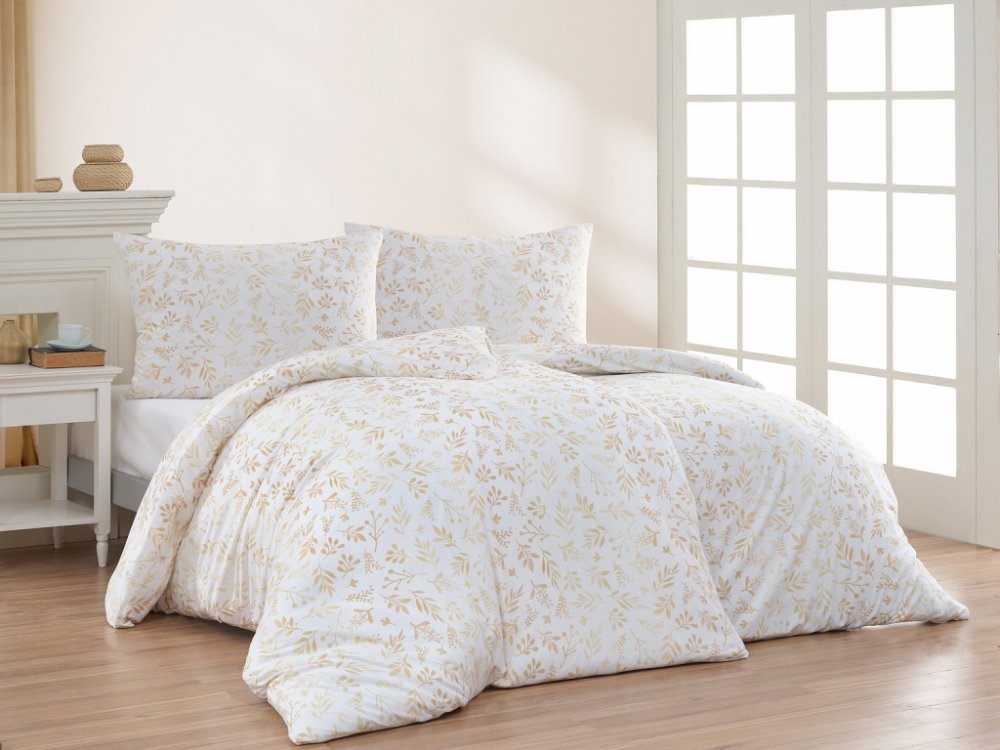 Povlečení Lunette s florálním motivem v paletě zlatě žlutých tonů na krémově bílém podkladu.