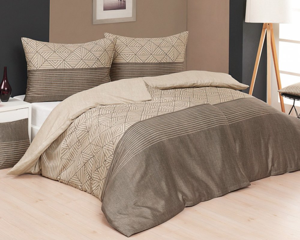 Bavlněné povlečení se vzorem různých kombinací proužků v hnědo-béžových barvách. Povlečení je oboustranné z obou stran stejné. Souprava je vyrobena ze 100% bavlny a obsahuje povlak na přikrývku 140 x 220 cm a povlak na polštář 70 x 90 cm. Zapínání na zip.