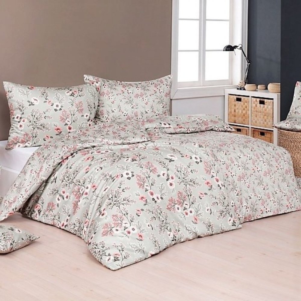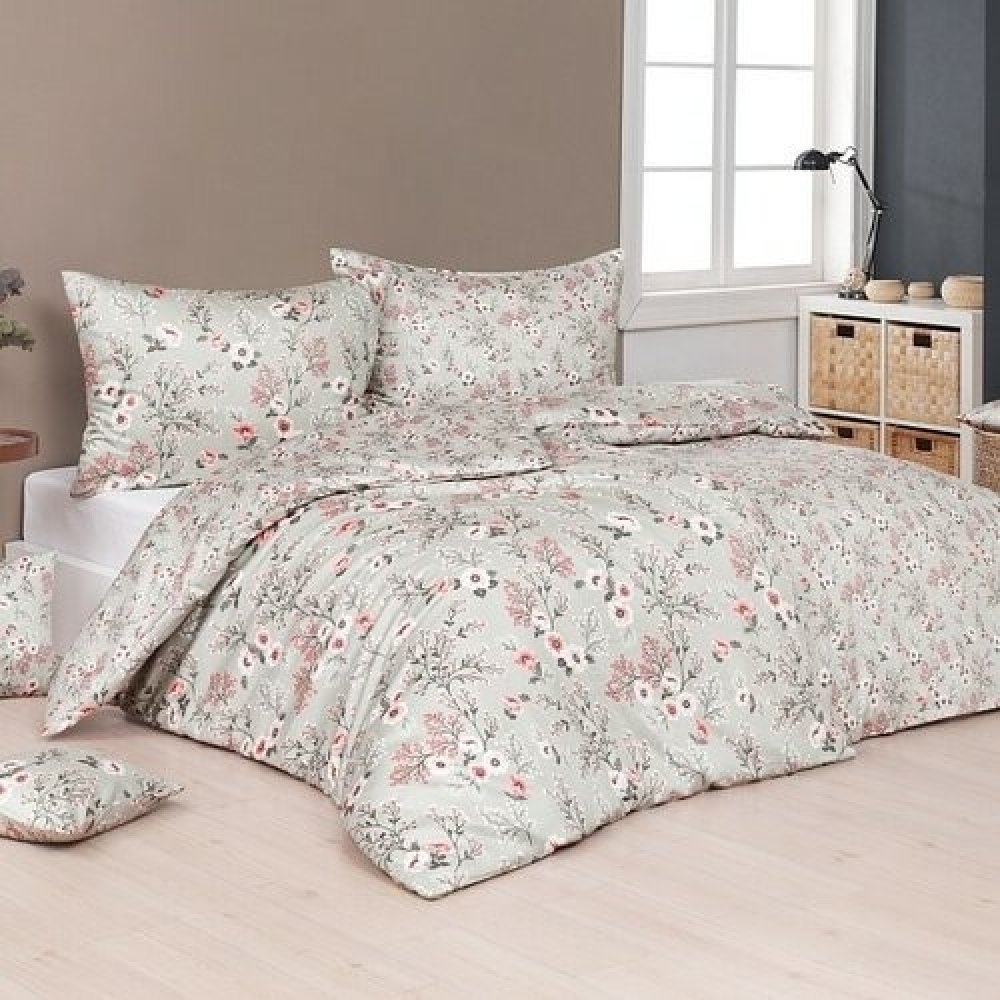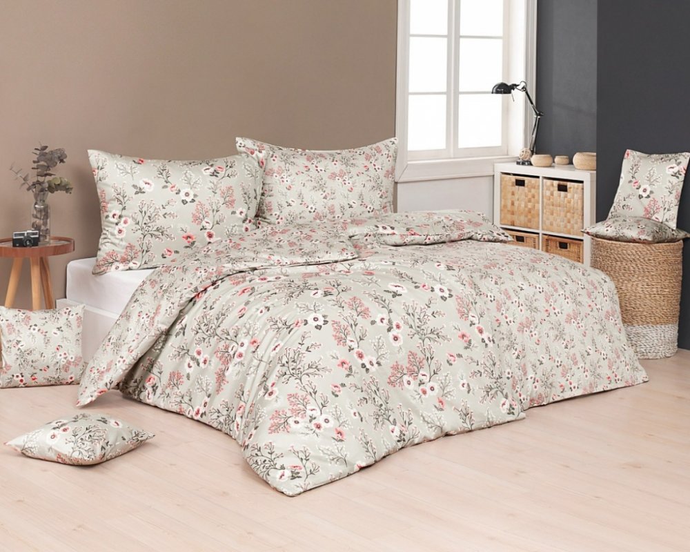 Povlečení se vzorem lososových květů na světle šedém podkladu. Povlečení je oboustranné z obou stran stejné. Souprava je vyrobena ze 100% bavlny a obsahuje povlak na přikrývku 140 x 200 cm a povlak na polštář 70 x 90 cm. Zapínání na zip.