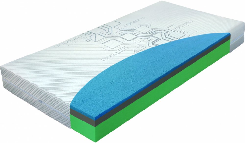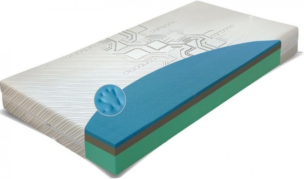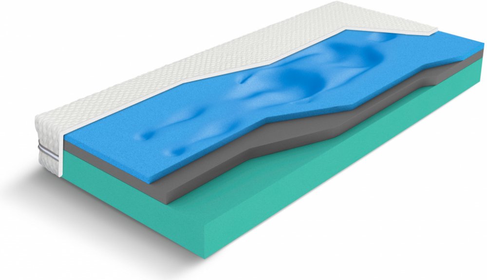 - vrchní vrstva - paměťová pěna s otevřenou buněčnou strukturou VISCO WIND (modrá barva pěny)