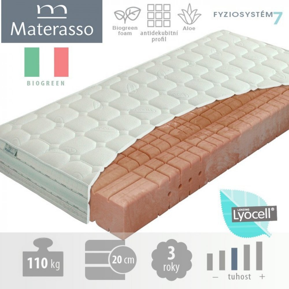 Pěna BIOGREEN a ndash; na této pěně se ukazuje, že spojení nejmodernějších technologií a obnovitelných přírodních zdrojů je možné i v oblasti výroby matrací. Toto spojení nejen šetří náš ekosystém, ale zároveň přináší i kus přírody do našich ložnic. Suroviny vyráběné z ropy jsou v této pěně nahrazeny přírodním materiálem a ndash; ricinovým olejem, který je už léta využíván ve farmacii. Rostliny z nichž se vyrábí, přijímají během svého růstu energii ze země a slunce, která se pak prostřednictvím oleje, dostává i do našich matrací. Pěna BIOGREEN je napuštěna výtažkem z ALOE VERA, který přirozeně zvyšuje hygienu matrace tím, že likviduje roztoče a bakterie. Zároveň dodává matraci charakteristické aroma, které během krátké doby odvětrá. Tato pěna se vyznačuje specifickou mramorovou strukturou. Jen v případě pěny BIOGREEN máte jistotu dlouhé životnosti, tvarové stálosti, vysoké elasticity, potažmo pak kvalitního spánku. To vše při zatížitelnosti až do 150 kg a garanci až 5 let na neproležení jádra matrace.