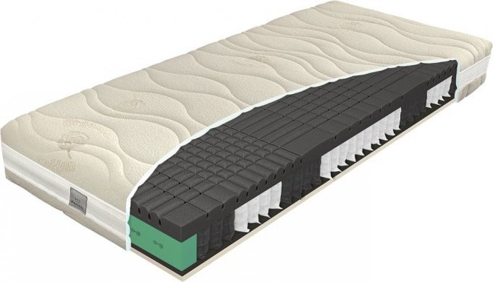 Taštičková pružina - Každá pružina je v samostatném obalu (v taštičce), díky čemu neovlivňuje deformací ostatní pružiny kolem a zajišťuje bodové kopírování těla. To je zárukou kvalitních ortopedických vlastností a výšší pružnosti i odolnosti matrace. Taštičkové matrace mají navíc vrchní a spodní pěnovou desku, která rozloží váhu těla na celou plochu a zabrání tak nepohodlnému „propadnutí“ do matrace i kontaktu s pružinou. Kvalitní pružinové matrace díky své tvarové stálosti a prodyšnosti vydrží nejdéle i v případě vysokého zatížení. Pružinové jádro se také stará o perfektní cirkulaci vzduchu, a proto je taštičková matrace vhodná i do vlhkého prostředí či v případě zvýšeného pocení. Taštičkové matrace vám tak slibují příjemný a zdravý spánek.