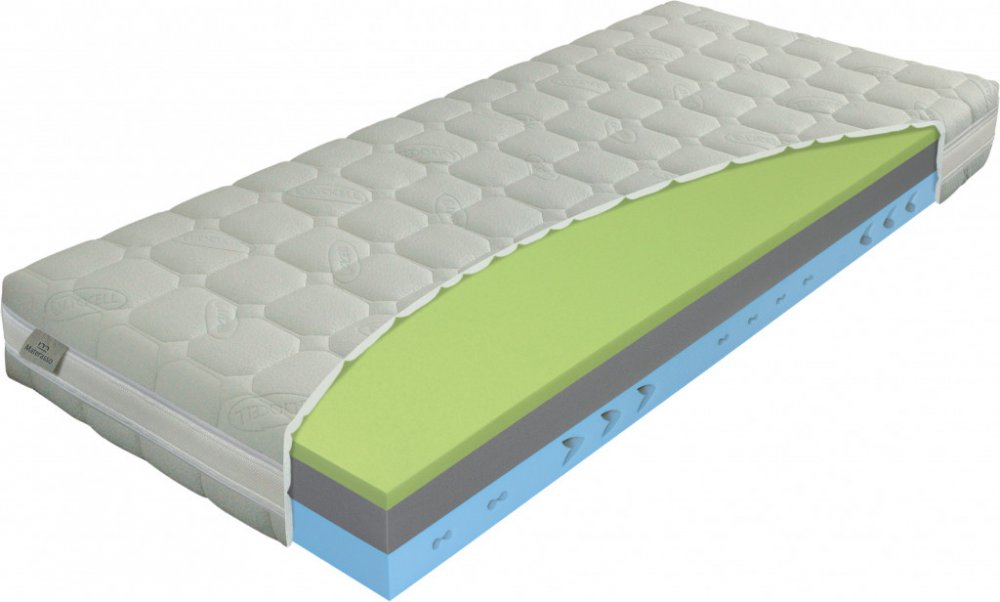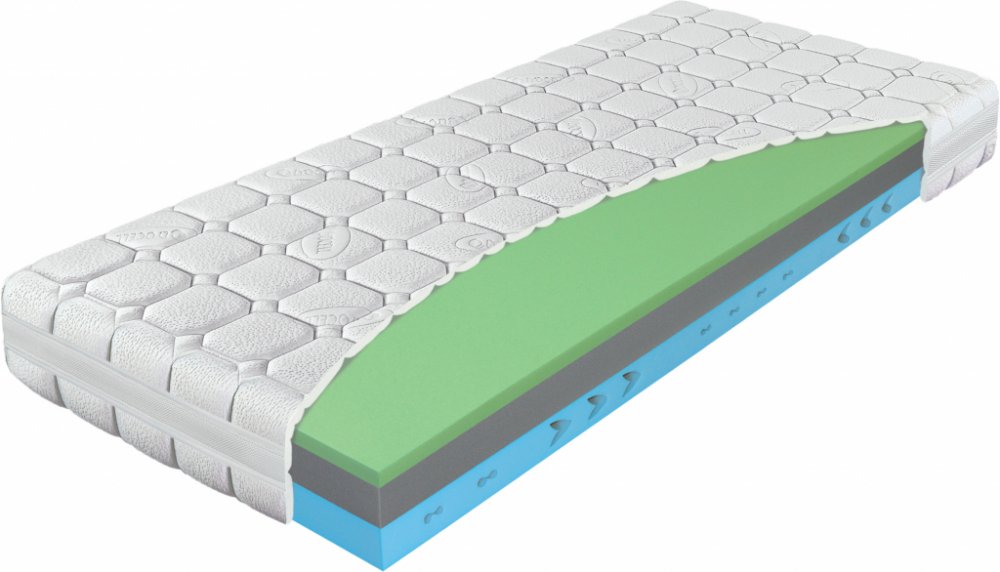 Spodní deska: Komfortní značková pěna ELIOCELL o hustotě 35 kg/m³- patří mezi základní materiály pro výrobu matrací. Její složení zaručuje dobré kopírovací vlastnosti a pevnost. Tento materiál, jehož kvalita prošla v poslední době zásadním vývojem je zárukou vašeho zdravého spaní. KOMFORTNÍ PĚNA je nový vývojový stupeň vycházející z ELIOCELL pěn, který při zachovaní dlouhé životnosti poskytuje o poznání vyšší stupeň komfortu. Matrace jsou vhodné na lamelový rošt.