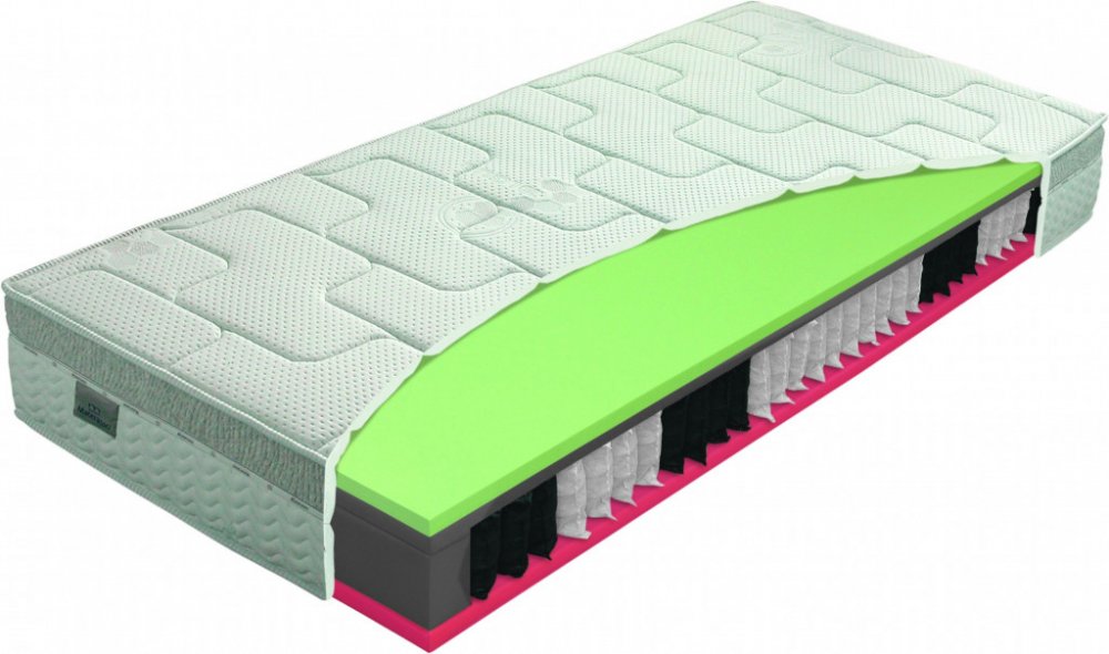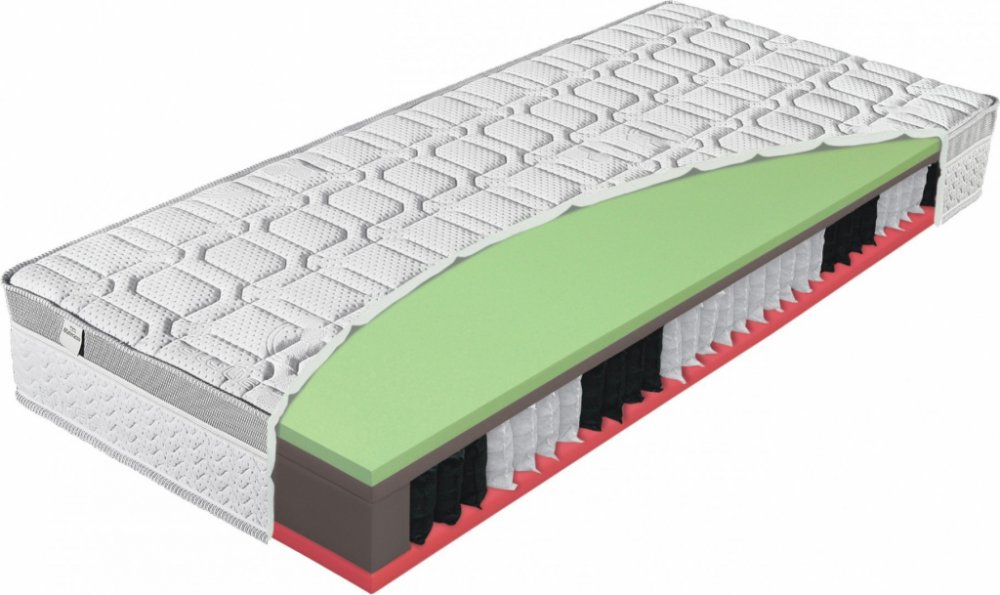 Jádro matrace: 7 zónová taštičková pružina – SYSTÉM 1000 - jsou špičkou mezi pružinovými matracemi. Každá pružina je uložena v tašce, která ji umožňuje samostatné kopírování. K vlastnostem, které má klasická bonell pružina, přidává lepší schopnosti ortopedické podpory páteře, a to díky většímu počtu pružin a jejich rozložení do sedmi zón tuhosti. Počet taštičkových pružin v jádru matrace standardního rozměru je 350 ks, u exkluzivních modelů 1000 ks. Takto vysoký počet samostatně „pracujících“ ortopedických bodů vám poskytne pocit maximálního pohodlí, který vám přinese radost ze spánku. Matrace s taštičkovou pružinou jsou vhodné na pevný rošt.