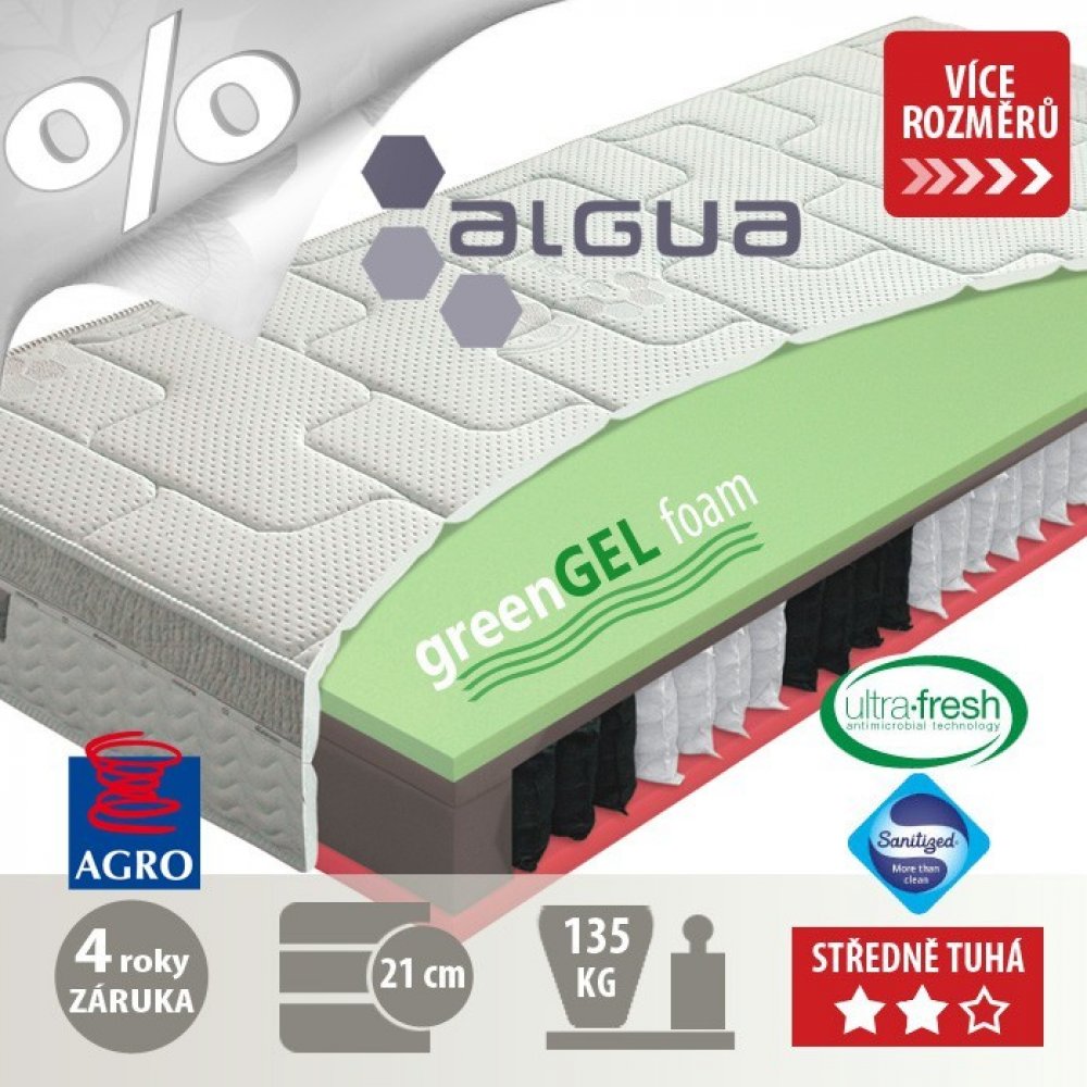 Potah ALGUA - V potahu jsou v mikrokapslích navázané výtažky z mořských řas Spirulina, které obsahují 11 přírodních vitamínů, 10 minerálů, 18 aminokyselin, 3 mastné kyseliny, beta-karoten, železo a množství antioxidantů a proteinů. Během spánku dochází k uvolňování těchto látek s blahodárným dopadem na lidskou pokožku. Jedná se o „Health&Beauty“ koncept, kdy při spánku podstupujeme wellness terapii. Potah je odnímatelný a pratelný na 60°