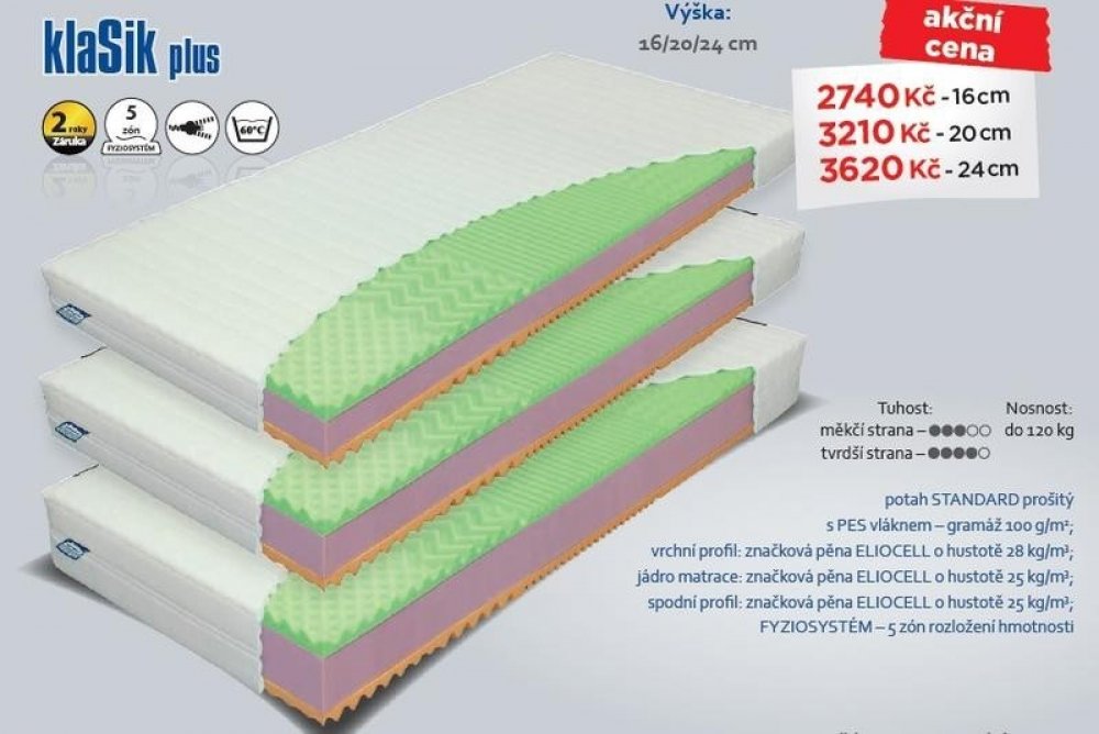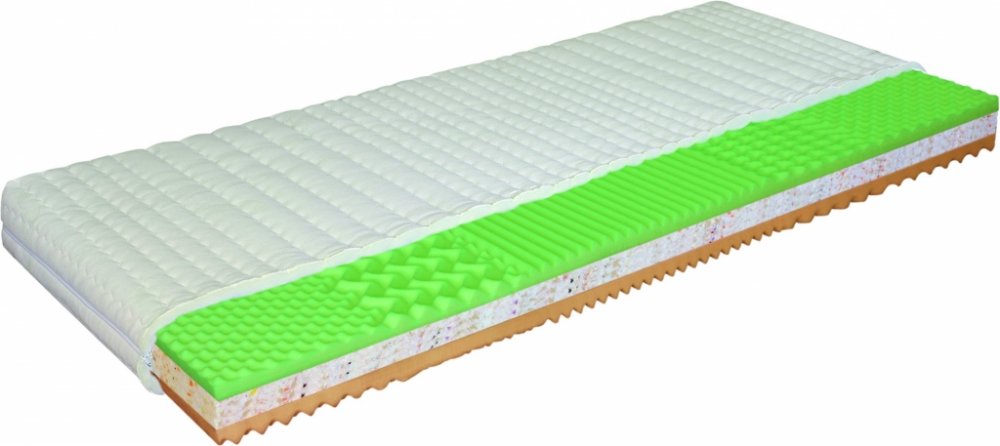 Sendvičová matrace ze značkové pěny Eliocell o vyšší tuhosti a bezproblémové funkčnosti. Vyzónované, vyprofilované jádro zaručuje dostatečnou oporu lidského těla. Matrace lze objednat ve výškách 16, 20 a 24 cm.