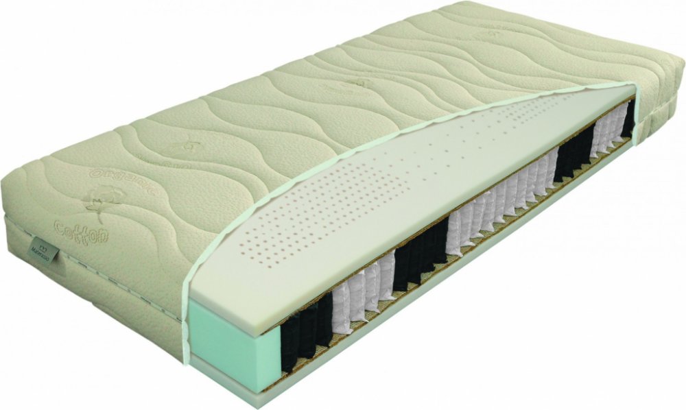 NATURA hydrolatex T3/T4 - luxusní oboustranná pružinová matrace pro zdravý spánek ATYP Představujeme Vám luxusní taštičkovou matraci NATURA hydrolatex vysokou 27 cm pro snadné vstávání. Kombinace pružin a kvalitní pěny hydrolatex Vám zaručí zdravý a komfortní spánek. Navíc máte možnost zvolit si vhodnou tuhost podle svých potřeb. Středně tvrdou ocení spíše dámy, tvrdší stranu zas gentlmeni. Jádro je tvořeno taštičkovými pružinami, které jsou uložené v netkané textilii. V kombinaci s luxusní, perforovanou pěnou hydrolatex je zaručena vynikající vzdušnost matrace, což je zárukou zdravého odpočinku. Konstrukce matrace je rozdedělena do 7 anatomických zón, které poskytují ideální oporu celému tělu. Chráničem pružiny z měkší strany je Seacelové vlákno. Chráničem pružiny z tvrdší strany přírodní kokosové vlákno. Potah ORGANIC COTTON. Bavlna je celosvětově nejoblíbenější tkanina. Je příjemná, komfortní, hypoalergenní, nedráždí pokožku a nevyvolává alergie. Bavlna je stoprocentně přírodní produkt, je velmi vzdušná a výborně odvádí vlhkost, čímž udržuje suché klima. Má schopnost odvádět tělesné teplo a snižovat pocení. Organická bavlna se pěstuje přirozeným způsobem bez využití pesticidů, herbicidů, chemických hnojiv a insekticidů. V potahu Organic Cotton je přírodní bavlna využita jak v látce, tak i v proševu. Potah je snímatelný a pratelný do 60 °C. Matrace je oboustranná s rozdílnými stranami tuhosti: T3/středně tvrdá + T4/tvrdší (na stupnici 1 až 5) Výška matrace 27 cm Maximální doporučená nosnost 120 kg měkší strana T3 Maximální doporučená nosnost 150 kg tvrdší strana T4 Vhodné uložení na pevné laťové rošty Záruka 5 let, pro uplatnění reklamace je potřebné uschovat výrobní čárový kód (čárkový kód najdete na igelitu, na potahu a na samotném jádru matrace)