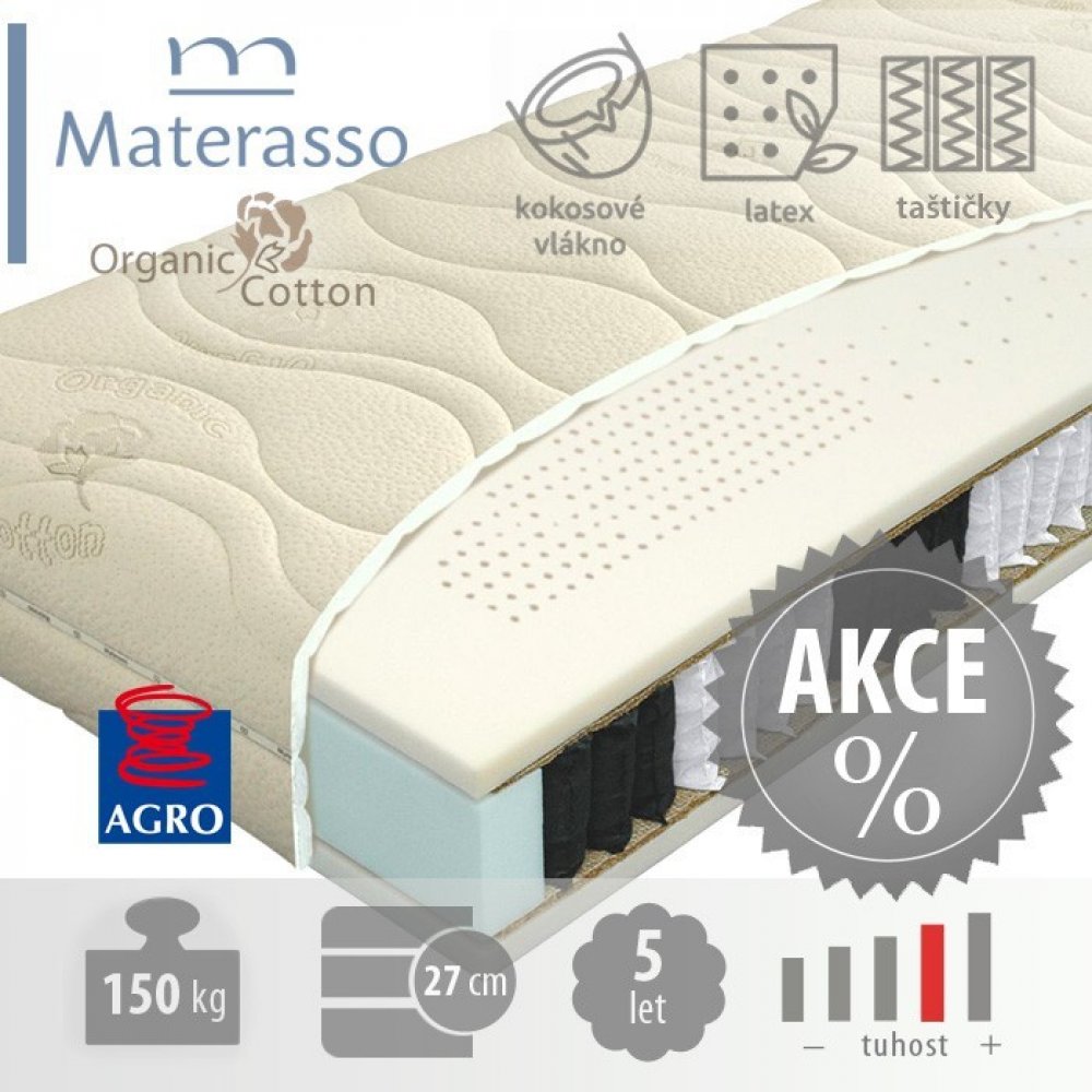 Materasso pružinové 7 zón 150 kg tuhost 4 tvrdá studená pěna (HR pěna) taštičkové