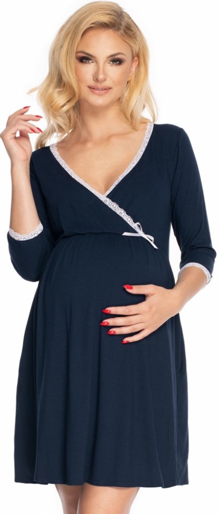 Mateřská noční košile s 3/4 rukávem, ozdobným lemem a mašlí vhodná ke kojení.