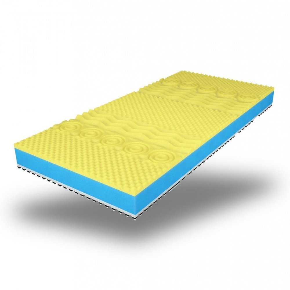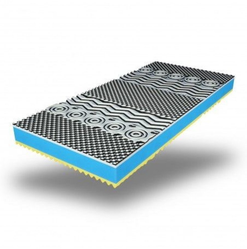 Česká matrace, vyrobená moderní technologií. Ortopedická, sendvičová s anatomickými zónami a masáží. Střední varianta v kolekci matrací Raketa.