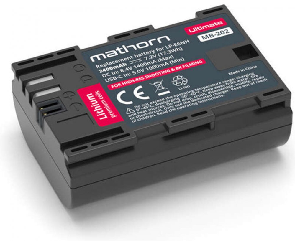 Baterie Mathorn Ultimate představují speciální třídu baterií, které znamenají průlom v oblasti alternativních náhrad dedikovaných baterií. Model MB-202 Ultimate využívá nově navržené vysokoproudé články s reálnou kapacitou 2400 mAh. Díky pokročilé technologii výroby nabízí tato baterie o více než 15 % delší výdrž ve srovnání s běžnou Mathorn baterií s kapacitou 2250 mAh a zároveň překonávají i originální baterie výrobce fotoaparátů, a to s téměř 10% delší výdrží.