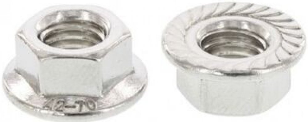 Nerezová matice s ozubeným límcem, který slouží jako podložka pod maticí. Velikost: M8 Materiál: Nerez A2
