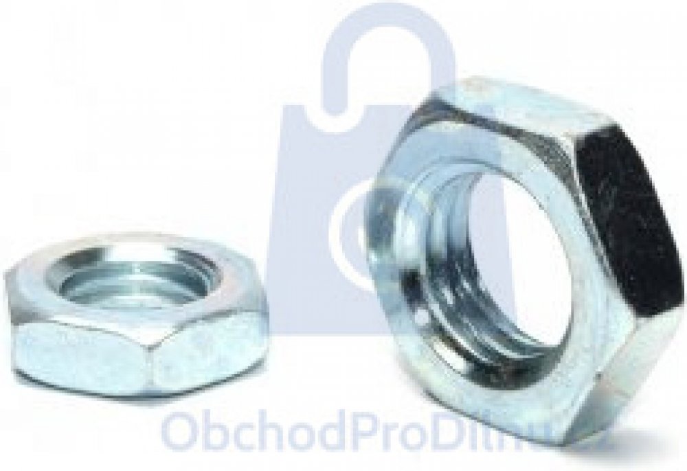 Nízká šestihranná matice je vyrobená dle normy DIN 439B a její povrch je ošetřen galvanickým pozinkováním. Prodej nízkých matic realizujeme v ucelené rozměrové řadě. Tuto matici využijete zejména v aplikacích, kde je pouze minimální prostor pro realizaci šroubového spoje. Galvanický zinek poskytuje nízké matici základní ochranu proti korozi ze vzdušné vlhkosti.