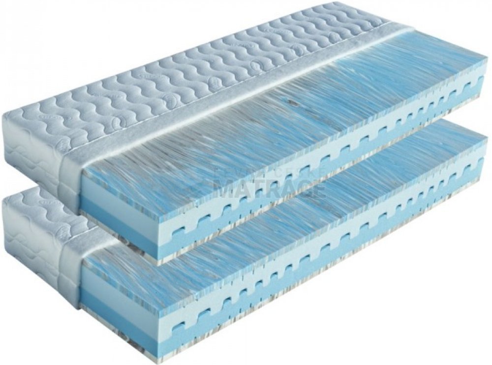 Podrobnosti o produktu MAT-88119 90 x 200 x 24 Luxusní matrace s volbou dvojí tvrdosti. Jádro matrace tvoří profilovaná studená HR pěna (40 kg/m a sup3;) společně s pěnou MediFoam (35 kg/m a sup3;). Ložné plochy tvoří dvě pěny. Pěna PanterFoam (50 kg/m a sup3;) šedé barvy, s vysokou elasticitou a tvarovou stálostí, a pěna PanterFoam Nautic (50 kg/m a sup3;) modré barvy. Tato pěna modré barvy má na...