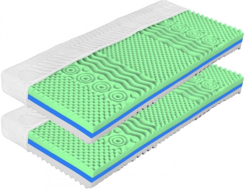 Akce 1+1! Novinka pro modelový rok 2020/2021! Favorit Memory 18 je bytelná tužší partnerská ortopedická sendvičová matrace s paměťovou pěnou a vysoce objemnou PUR pěnou s rozdílnou tuhostí stran, masážními anatomickými zónami. Výška 18 cm Skvělá opora a zmírnění otlaku na unavené tělo Sedíte celý den u počítače a nebo jste naopak celý den na nohou? Tak či tak je to velká zátěž na vaši páteř. Konstrukce Favoritu Memory 18 vychází z naší dlouhodobě nejprodávanější tužší matrace Favorit Hard 18, o proti ní jsme ji navíc vylepšili o paměťovou pěnu, je tak ideální pro ty, kteří dávají své páteři zabrat ať už dlouhým sezením či fyzicky náročnou prací a chtějí si v noci opravdu odpočinout. Pokud hledáte bytelnou, tužší matraci, navíc s paměťovou pěnou pro zmírnění otlaku na klouby a páteř, je Favorit Memory 18 jednoznačně náš tip! Výhoda je její bytelnost a nosnost až 135 Kg/os. Nabízí opravdu příjemný komfort vyšší tuhosti se zvýšenou oporou páteře a dodatečný komfort paměťové pěny na jedné ložné ploše. V poměru kvality materiálů ku své ceně nabízí vynikající poměr cena/výkon. Dvě strany tuhosti Díky různě tuhým stranám je matrace vhodná pro páry jako partnerská matrace, nebo pro ty, kteří si nejsou jisti výběrem tuhosti. Strana Paměťová – měkčí, poddajnější strana matrace, vyrobená z paměťové pěny vysoké objemové hmotnosti, která reaguje na tělesné teplo a tlak a svým odlehčujícím efektem ulevuje kloubům (ramena, kyčle) a pečuje tak o pohybový aparát. Jemný masážní efekt se stará o úlevu stresem napjatého svalstva. Strana Tvrdší – pružnější a tužší strana matrace z kvalitní PUR pěny se 7- zónovou profilací. Oblíbená střední tuhost, jemně elastická a vzdušná. Vylepšený potah Imperial Imperial - luxusní pratelný potah o vysoké pevnosti pro optimální odvod vlhkosti, pratelný (60 °C). Prošívaný klimatizační vrstvou dutého vlákna pro vzdušnost a izolaci. Snadno snímatelný (zip kolem dokola pro snadnou manipulaci). (fotografie provedení potahu je ilustrační, vyobrazené barevné provedení pěn se může lišit z důvodu různých šarží výroby, technické parametry pěn jako objemová hustota a tuhost jsou garantované a neměnné) Parametry matrace Favorit Memory 18 Výška: 18 cm - limitovaná ediceNosnost: 135 kg / osobaTuhost: různá tuhost stran, celkově vyšší střední tuhost (3-4) Složení: PUR pěny / paměťová pěnaZáruka: 3 roky / testováno mechanickými zátěžovými testy (50.000x) Dostupné rozměry v akci 1+1 195x80, 195x85, 195x90, 200x80, 200x90cm. Pro nákup 2ks vložte do košíku 1 set, rozměry je možné kombinovat, informujte nás v poznámce u objednávky. Ostatní rozměry vyrobíme na míru dle požadavku - poptávejte zde Balení Aby se vám s matrací lépe manipulovalo, je balení komprimované - rozměr cca 35cm x šířka matrace. Matraci opatrně vybalte a nechte až 48h vybalenou, aby se vrátila do původní velikosti. NÁŠ NÁZOR: "OJEDINĚLÁ KOMBINACE TUŽŠÍHO JÁDRA S PAMĚŤOVU PĚNOU PRO ZMÍRNĚNÍ OTLAKU NA UNAVENÉ TĚLO, VYCHÁZÍ Z LÉTA OVĚŘENÉ MATRACE FAVORIT HARD, KTERÁ JE JEDNOU Z NEJPRODÁVANĚJŠÍCH MATRACÍ V ČR, NAVÍC SKVĚLÁ AKCE 1+1, DOPORUČUJEME"