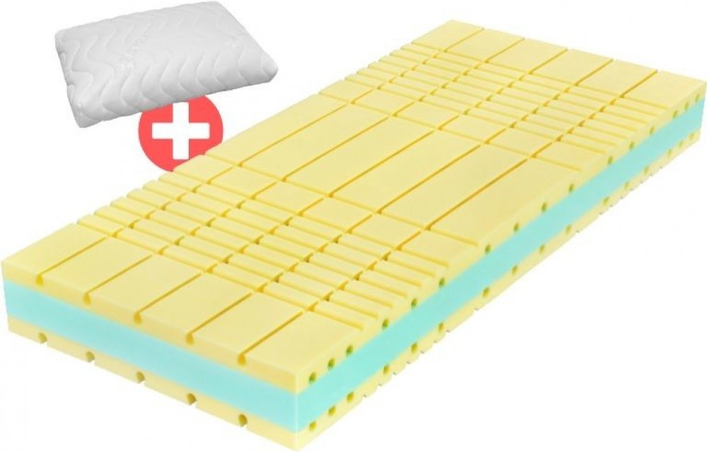 Super vzdušná, vysoce tuhá, nosná a neobyčejně pružná matrace to je Herkules Clima. Pro milovníky tužšího položení, pro ty, kteří se více potí, pro juniory i seniory. Dokonale vyladěný sendvič. Skvělá partnerská matrace s různou tuhostí stran Nově s různou tuhostí stran(tvrdá - extra tvrdá). Matrace je vhodná jako partnerská, kdy si každý z partnerů může zvolit vyhovující tuhost pouhým otočením matrace. Nabízíme ve výšce 22cm (+ poslední kusy v doprodeji ve výšce 25cm - tato výška pouze se stejnou tuhostí stran = doprodej původního provedení) Polštář s paměťovou pěnou zdarma! Do vyprodání zásob: ke každé matraci Herkules Clima, luxusní paměťový polštář Monte Carlo v ceně 490Kč ZDARMA! Automaticky Vám ho přibalíme k objednávce :-) Extra bytelná matrace s technologií AirForce AirForce technologie, jíž disponují obě strany matrace, zajišťuje nejvyšší dosažitelnou vzdušnost u pěnových matrací, která dokáže předčit i matrace pružinové. Speciální profilace: 3- osé spojité kanály zajišťují vynikající cirkulaci vzduchu. Navíc, s každým pohybem těla se jádro matrace chová jako pumpa = dochází k výměně vzduchu. Odvod potu a vysoká hygiena jsou synonymem matrace Herkules Clima. Studené pěny na obou stranách matrace ještě více přispívají svojí otevřenou buněčnou strukturou ke vzdušnosti. Nově s různou tuhostí stran - jedna strana tvrdší, druhá extra tvrdá. Vysoká pružnost pro snadnou změnu poloh při spánku. Střední část jádra z tuhé Flexifoam® pěny pro tuhost a odolnost. Velká výška pro pocit jistoty na lůžku. Potah s úpravou proti roztočům Luxusní potah BAMBOO s ochranou proti plísním a roztočům s krásným plastickým designem pratelný na 60°C je vzdušný a zajišťuje skvělé odvětrávání matrace. Snadno snímatelný (zip kolem dokola pro snadnou manipulaci). Parametry matrace Herkules Clima Výška: 22cmNosnost: 150kg / osobaTuhost: tvrdá - vysoce tvrdá (4-5)Složení: PUR pěny Flexifoam / studené pěnyZáruka: 5 let / testováno mechanickými zátěžovými testy (80.000x) Dostupné rozměry 195x80, 195x85, 195x90, 200x80, 200x90, 200x100, 200x120, 200x140, 200x160, 200x180cmOstatní rozměry vyrobíme na míru dle požadavku - poptávejte zde Balení Aby se vám s matrací lépe manipulovalo, je balení komprimované - rozměr cca 35cm x šířka matrace. Matraci opatrně vybalte a nechte až 48h vybalenou, aby se vrátila do původní velikosti. Náš názor: "opravdu pořádná bytelná matrace s naddimenzovanou nosností až 150kg a pocitově tvrdší s perfektní vzdušností" Upozornění: u matrace Hekules Clima vyprodáváme poslední kusy ve výšce 25 cm v původním provedení se stejnou tuhostí stran.