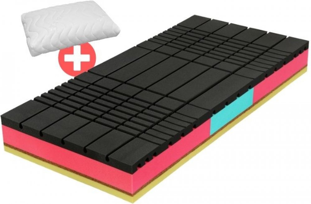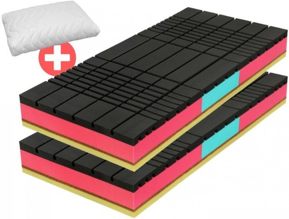 Akce 1+1! 26cm vysoká ortopedická matrace Lotus, nově s vylepšeným složením pro rok 2021, je velmi bytelná matrace s různou tuhostí stran s perfektní vzdušností a oporou z vysoce objemných pěn pro dlouhou životnost. Tvrdší strana vyztužená kokosovou deskou. Příjemný antibakteriální pratelný potah Lurex. Polštář s paměťovou pěnou zdarma! Do vyprodání zásob: k setu matrací Lotus 1+1 obdržíte 1x luxusní paměťový polštář Monte Carlo v ceně 600Kč ZDARMA! Automaticky Vám ho přibalíme k objednávce :-) Nadstandardní pěny - vysoká vzdušnost a tuhost Měkčí strana (soft) - pěna prořezávaná technologií AirForce = speciální příčné a podélné prořezávání pěny pro vysokou vzdušnsot. Vyztužená bederní část z odolné, tuhé a vysoce objemné pěny pro podporu nejnamáhanější části matrace. Tvrdší strana (hard) - bytelná pěna se skvělou pružností a vzdušností, rovná bez profilace pro milovníky klasiky navíc dodatečně zpevněná přírodní kokosovou deskou. Nově: Luxusní potah Lurex Matrace Lotus je nově vybavena luxusním potahem Lurex s antibakteriální úpravou pro maximální hygienu spánku, potah je navíc prošívaný klimatizační vrstvou dutého vlákna. Je snímatelný a pratelný na 60°C. Potah je snadno snímatelný, se zipem do 4 stran, bezproblémové praní v domácích podmínkách. Parametry matrace Lotus Výška: 26cmNosnost: 150kg / osobaTuhost: různě tuhé strany (3,5 - 5)Složení: Vysoce objemné PUR pěny / kokosZáruka: 5 let / testováno mechanickými zátěžovými testy (80.000x) (vyobrazené barevné provedení pěn se může lišit z důvodu různých šarží výroby, technické parametry pěn jako objemová hustota a tuhost jsou garantované a neměnné) Dostupné rozměry v akci 1+1 195x80, 195x85, 195x90, 200x80, 200x90cmOstatní rozměry vyrobíme na míru dle požadavku - poptávejte zde Balení Matrace pečlivě balíme do několika vrstev pevného igelitu, aby k vám dorazily čisté. U této matrace je balení nekomprimované, čili matraci můžete po vybalení ihned použít. Náš názor: "hned po ulehnutí poznáte pocit z pořádné bytelné matrace, perfektní vzdušnost, pružnost - vhodná i pro seniory pro snadné vstávání, výhoda různě tuhých stran navíc akce 1+1"