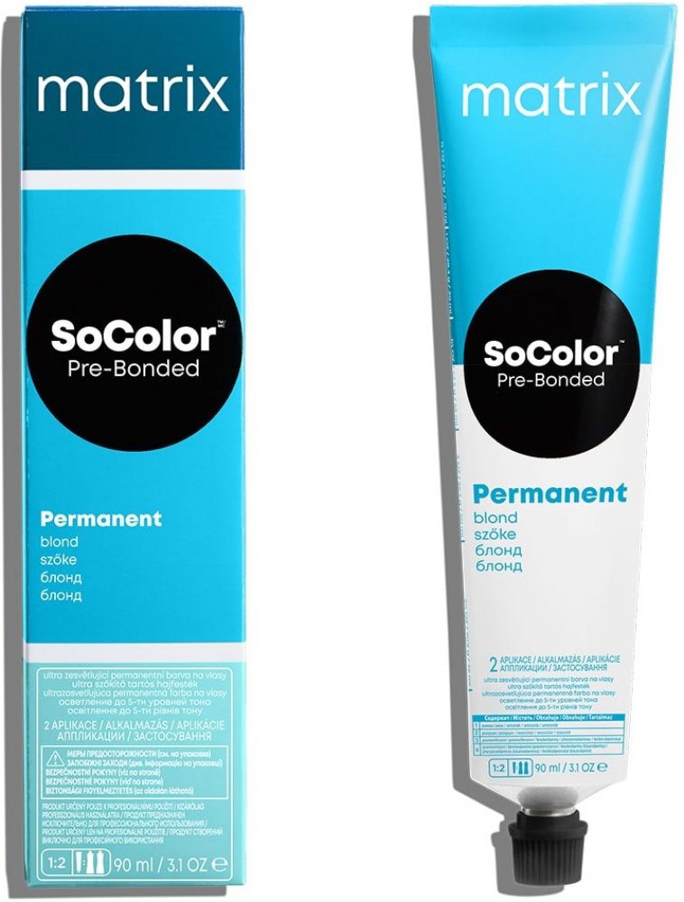 Matrix Socolor Pre-Bonded 90g Permanentní krémová barva na vlasy s pečujícím komplexem, který vlasům dodává non-stop péči. Vydrží až 20 umytí šamponem, vyrovnává poréznost vlasu a uhlazuje ho na povrchu. Vyživuje a posiluje vlasové vlákno zevnitř. PŘÍPRAVA: 1. Používejte vhodné jednorázové rukavice! 2. Používejte pouze s doporučenými oxidanty: 40vol (12%) maximálně. Nepoužívejte s větším množstvím peroxidu vodíku než 40 vol (12%). 3. Dodržujte uvedený směšovací poměr! 4. V případě, že používáte k přípravě směsi shaker, otevřete jej ihned po skončení míchání, hrozí vypěnění produktu a poškození a roztrhnutí nádobky. MÍCHÁNÍ: Smíchejte barvu Pre-Bonded s vhodně zvolenou silou krémového oxidantu Matrix v poměru 1:1. Například 45ml Pre-Bonded barvy + 45ml krémového oxidantu Matrix. APLIKACE A OPLACHOVÁNÍ: 1. Používejte vhodné jednorázové rukavice! 2. Nepoužívejte kovové předměty. 3. Nechte působit za pokojové teploty 30 až 45 minut podle potřeby. 4. Po skončení doby aplikace vlasy důkladně opláchněte. 90 ml