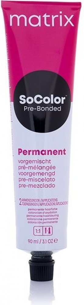 Permanentní barva Matrix SoColor Pre-Bonded Blended Permanent Hair Color obsahuje unikátní technologii Pre-Bonded, která chrání a vyživuje vnitřní strukturu vlasů, čímž eliminuje jejich poškození během barvení, zpevňuje a vyhlazuje vlasové vlákno, omezuje lámavost vlasů a zároveň zanechává vlasy silné a neporušené s výrazným leskem. Krémová konzistence umožňuje snadnou aplikaci, je šetrná k citlivým a křehkým vlasům, zajišťuje jednotnost a hloubku odstínů a vytváří syté, dlouhotrvající barevné výsledky se zářivým leskem.