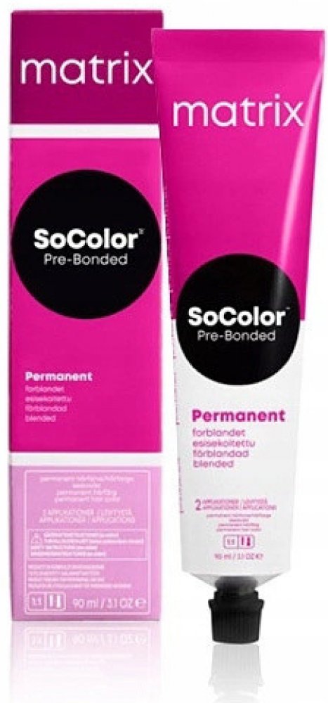 Permanentní barva Matrix SoColor Pre-Bonded Blended Permanent Hair Color obsahuje unikátní technologii Pre-Bonded, která chrání a vyživuje vnitřní strukturu vlasů, čímž eliminuje jejich poškození během barvení, zpevňuje a vyhlazuje vlasové vlákno, omezuje lámavost vlasů a zároveň zanechává vlasy silné a neporušené s výrazným leskem. Krémová konzistence umožňuje snadnou aplikaci, je šetrná k citlivým a křehkým vlasům, zajišťuje jednotnost a hloubku odstínů a vytváří syté, dlouhotrvající barevné výsledky se zářivým leskem.