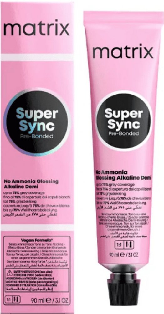 Matrix Super Sync Pre-Bonded je inovativní demi-permanentní barva, která nabízí dokonalou ochranu pro vlasy při barvení. Tento alkalický toner je bez amoniaku, což zajišťuje jemnou péči a minimální poškození vlasového vlákna. Super Sync je navržen pro okamžitou ochranu vlasů díky novému komplexu Pre-Bonded, který poskytuje maximální ochranu a skvělou pokrytí šedin až do 75%. Tento toner nejen že b...