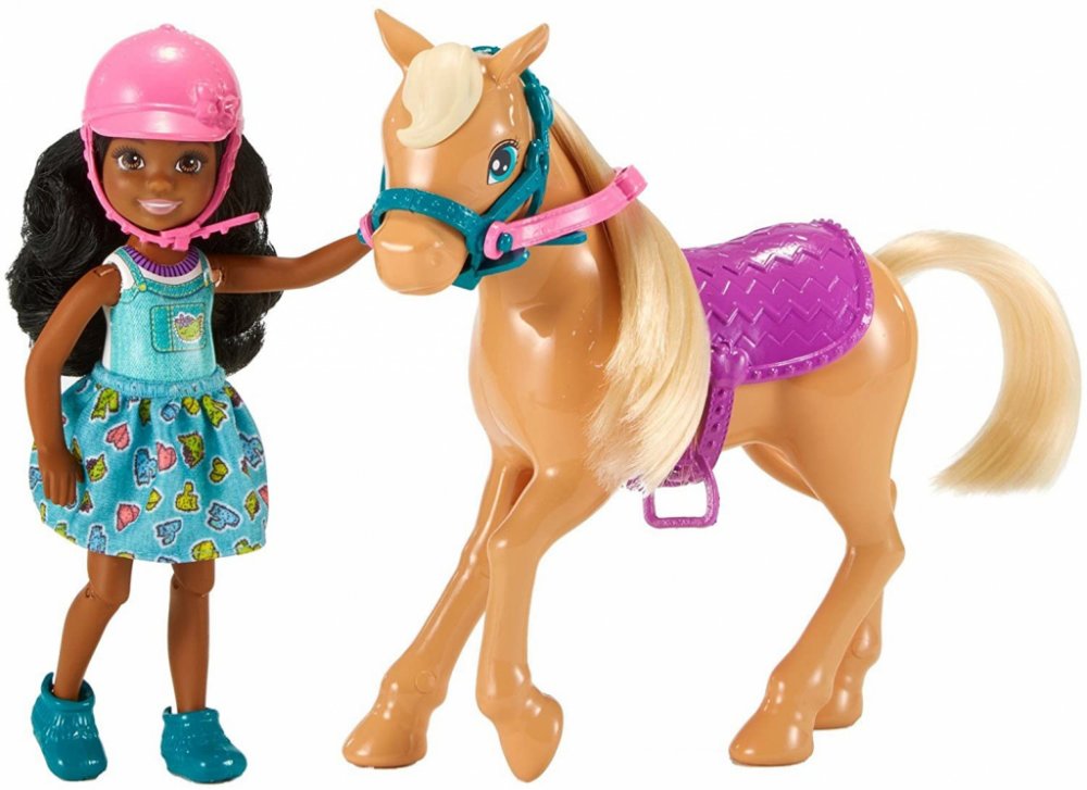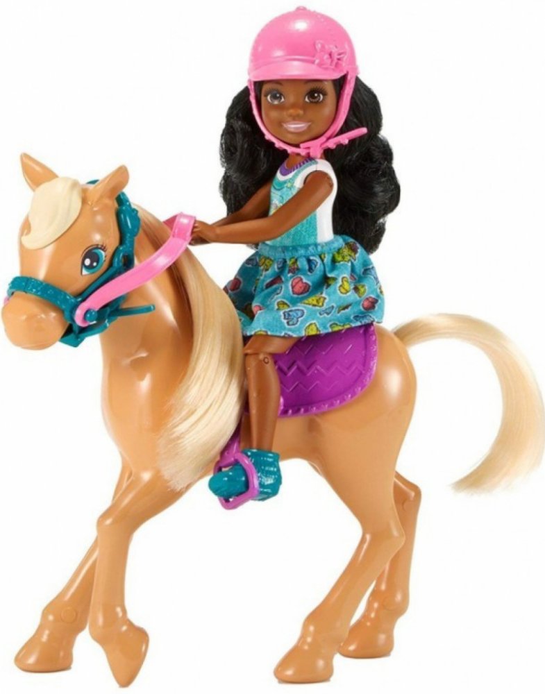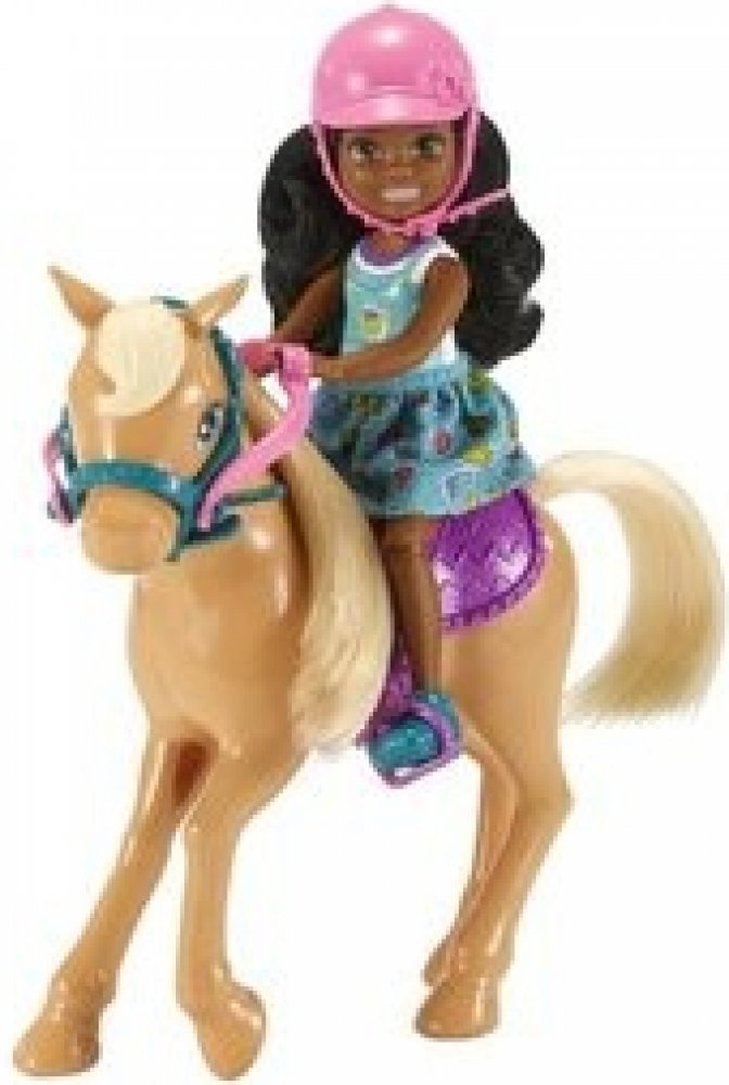 Vyraž s panenkou Chelsea™ a jejím poníkem na projížďku! Panenka i poník mají pestrobarevné jezdecké doplňky. Ponny má dlouhou hnědou hřívu a ocas, pohodlné sedlo a otěže, které skvěle zapadnou na své místo.