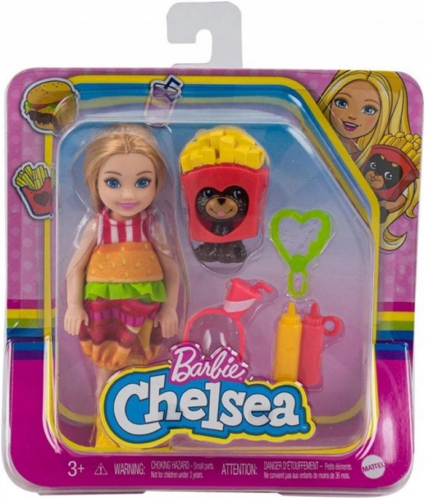 Mattel Barbie Chelsea v kostýmu Hamburger s pejskem GRP69