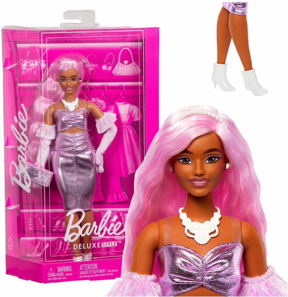 Panenka Barbie okouzlí každé dítko a společně budou tvořit nerozlučnou dvojku doma i při rodinných výletech. Zajímavé ztvárnění navíc umocňuje růžová barva vlasů. K její výrobě slouží plast. Panenka Barbie Modelka měří na výšku 32,5 cm. Děti si mohou panenku navíc převléknout do přidaného oblečení. Panenka je ideální pro děti od 4 let. Zásadní přednosti produktu Barbie deluxe modelka s metalickými...