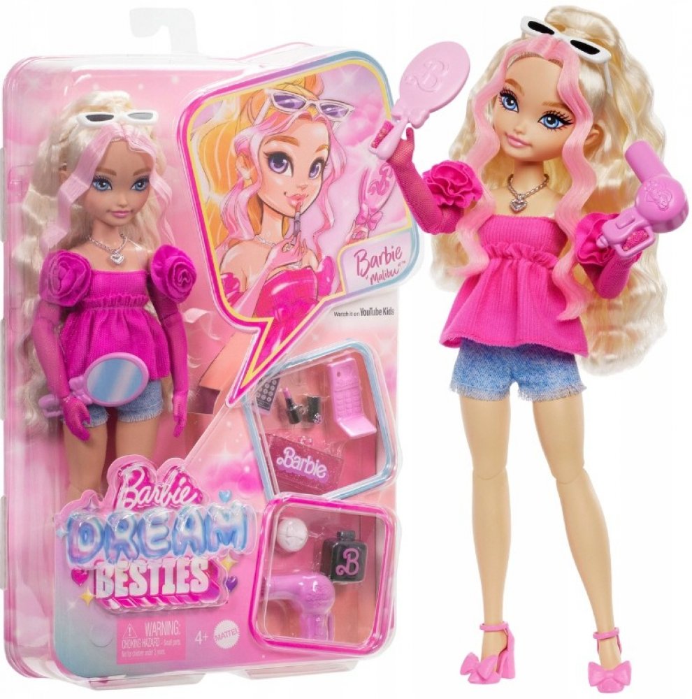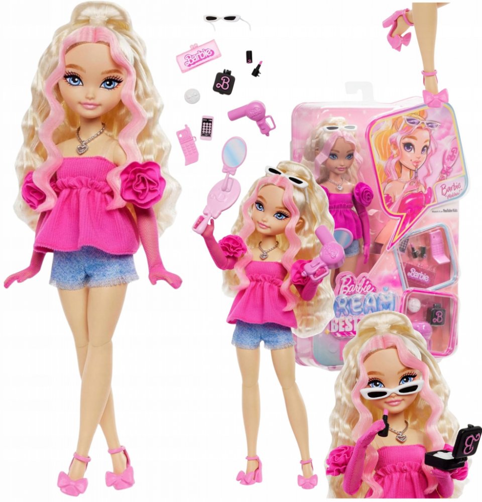 Panenka Barbie zajisté nadchne každé dítko a společně si užijí spoustu her a zábavy. Zajímavé provedení umocňuje rovněž blonďatá barva vlasů. Materiálem panenky je plast. Panenka Barbie Dream Besties má výšku 32,5 cm. Panenka je ideální pro děti od 4 let. Klíčové vlastnosti produktu Barbie Dream Besties Malibu s 11 doplňky Panenka Barbie Dream Besties je nezbytnou součástí dětských hraček Učaruje ...