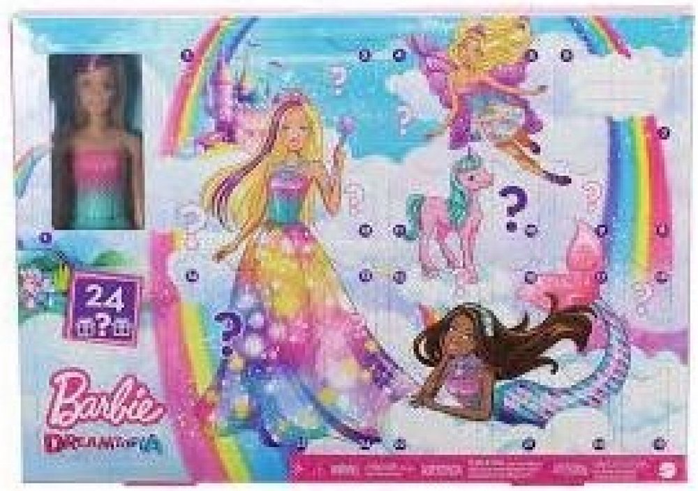 Rozměry balení cca 45 x 33 x 5 cm (d x v x š).Přidejte fantazii do svátků s Barbie adventním kalendářem s dárky s fantasy tématikou! Po dobu 24 dní otevírejte jedno překvapení denně (nebo někdy všechny najednou!) a užijte si superzábavné rozbalování. První den děti objeví růžovovlasou panenku Barbie a poté módní a výmluvné doplňky, které se s přibývajícími odhaleními promění v mořskou pannu, královnu nebo vílu! Denní dárky zahrnují ocas mořské panny, vílí křídla, jednorožce a další kouzelná zvířátka, efektní čelenky a další zábavné předměty. Sada Barbie adventní kalendář s tolika překvapeními je fantastickým dárkem pro děti od 3 let. Panenka nemůže stát samostatně. Mohou se objevit barvy a dekorace. Adventní kalendář Barbie Dreamtopia (Nově vytvořená položka - popis následuje, také na vyžádání) Lotové zboží - když je pryč, tak pryč Texty článků budou přidány co nejdříve! Adventní kalendář Barbie s překvapením s fantasy tématikou se postará o kouzelné Vánoce! Za každými z 24 dvířek se každý den skrývá překvapení (nebo všechna najednou!), které zajistí skvělou zábavu při rozbalování. Za prvními dvířky se skrývá panenka Barbie s růžovými vlasy. Všechny ostatní dveře obsahují oblečení a doplňky pro vyprávění příběhů. Barbie se může proměnit v mořskou pannu, šlechtičnu nebo vílu! Obsahem je ocasní ploutev, vílí křídla, malý jednorožec a další kouzelná zvířátka, fantasy gumičky do vlasů a další doplňky pro ještě větší zábavu při hraní. Tento Barbie adventní kalendář s tolika překvapeními je fantastickým dárkem pro děti od 3 let. Panenka nemůže stát samostatně. Barva a design se mohou lišit, upozorňujeme: