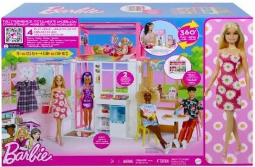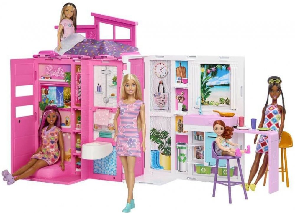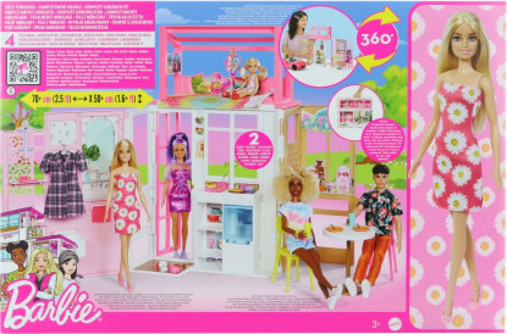 Tento roztomilý a barevný domeček pro panenky Barbie® je vyroben z plastů na ekologické bázi a je skládací pro pohodlné uložení. Součástí herního setu je panenka Barbie®, která podporuje vyprávění příběhů, a také 4 herní plochy včetně kuchyně, koupelny, ložnice v podkroví a filmového koutku. Nábytek a doplňky rozšiřují možnosti hraní, zatímco designové detaily jako „solární panely“ podporují ekolo...