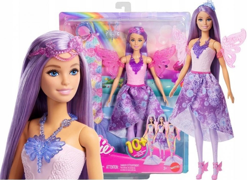 Vstupte do pohádkové země s panenkou Barbie 3 v 1 Fantasy, která vám umožní vytvářet různé magické příběhy! Panenka má vyměnitelné prvky, díky kterým ji můžete proměnit v mořskou pannu s krásným ocasem, vílu s jemnými křídly nebo princeznu v oslnivém šatě. Každá stylizace je plná lesku a barev a podporuje kreativní hru.