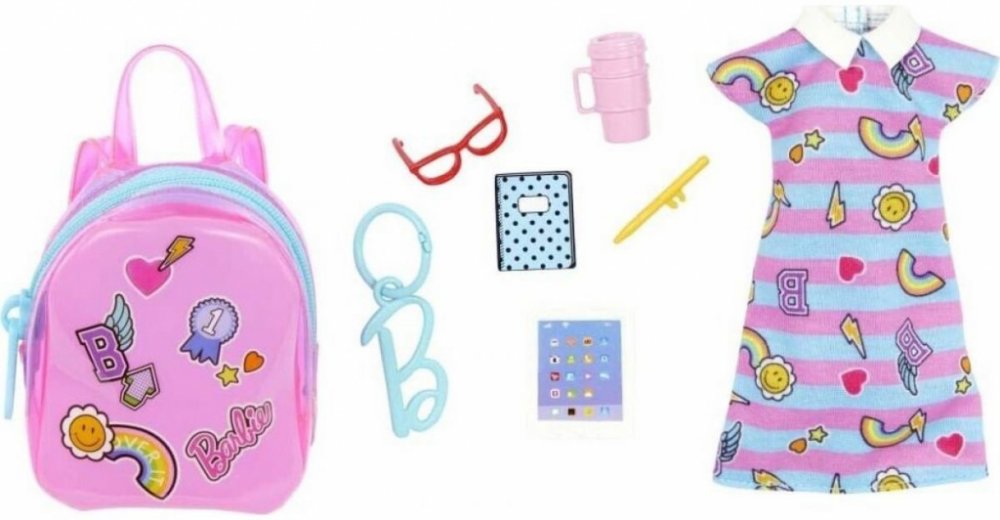 Tento prémiový módní set Barbie® nabízí roztomilou tašku, kabelku nebo batůžek (prodává se samostatně) pro panenku Barbie®. Součástí každého setu je roztomilý obleček a pět doplňků. Každá taška, kabelka nebo batůžek je dokonce vybavena klipem, který lze zavěsit na dětský batoh. Panenka se prodává samostatně. Každý módní set se prodává samostatně, dle aktuální nabídky. Barvy a vzhled výrobku se moh...