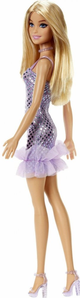 Hvězdy září na noční obloze a Barbie září svým třpytivým pohledem! Tato panenka Barbie zachycuje nejnovější módní styl s moderními minišaty a doplňky. Její lila šaty jsou plně zdobeny kovovými detaily a jsou ideální pro každou noc! Přiléhavý střih a průsvitný volán na lemu šatů dodávají ještě více půvabu. Součástí outfitu je odpovídající choker náhrdelník a tenké sandály, které doplní vzhled na jakoukoli párty nebo zvláštní příležitost! Barbie má své blond vlasy upravené rovně pro ještě elegantnější vzhled. Tyto panenky Barbie, oblečené v oslnivém vzhledu, mohou inspirovat k různým kreativním hrám a vyprávění příběhů pro děti od 3 let.