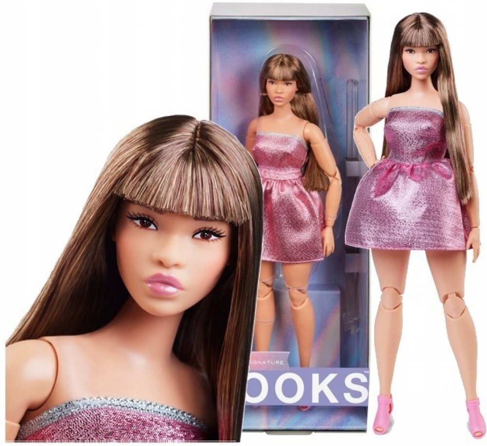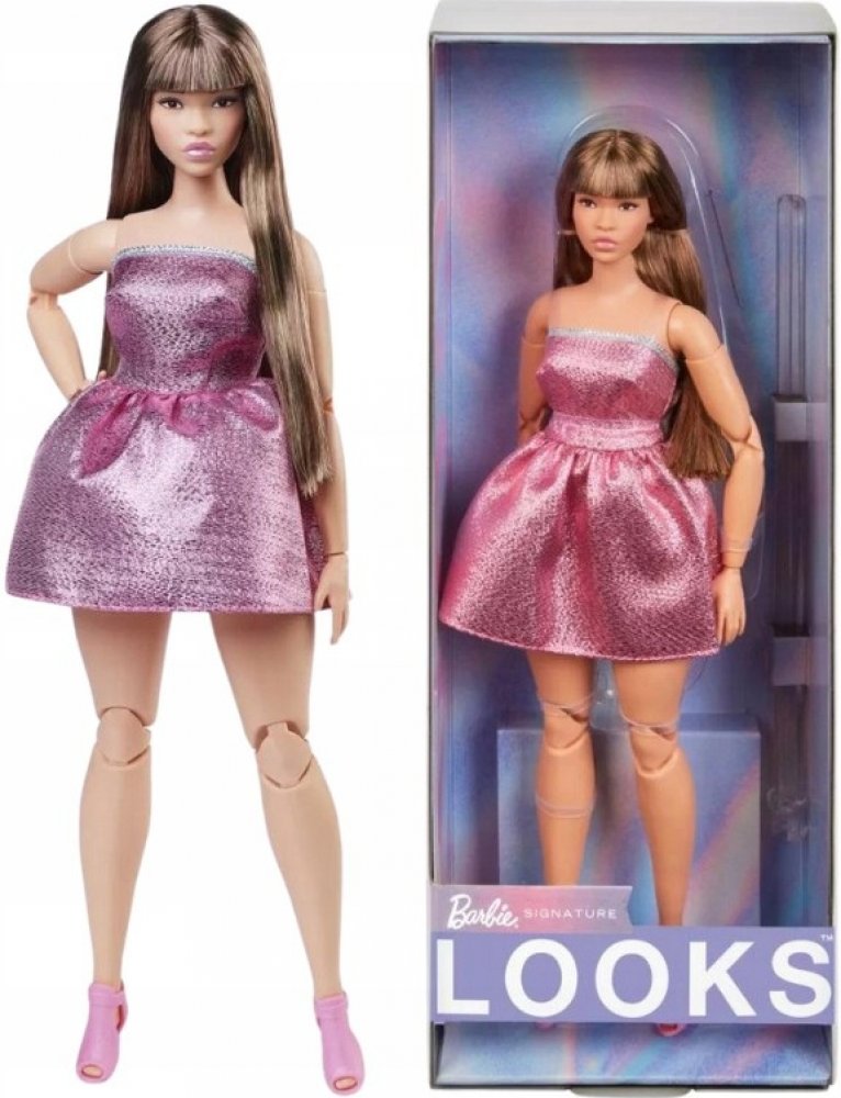 Mattel Barbie Looks brunetka v růžových mini šatech