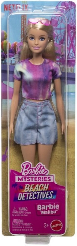 S panenkou Barbie „Malibu“ můžete vymýšlet nejrůznější detektivní příběhy. Tato módní panenka má batikovaný top a džínové šortky s růžovým prošíváním, její outfit doplňují vysoké tenisky a sluneční brýle. Děti a fanoušci od 3 let si zamilují vymýšlení vlastních záhad. Panenka nemůže stát samostatně. Barvy a vzhled výrobku se mohou lišit. S panenkou Barbie „Malibu“ můžete vymýšlet nejrůznější detek...