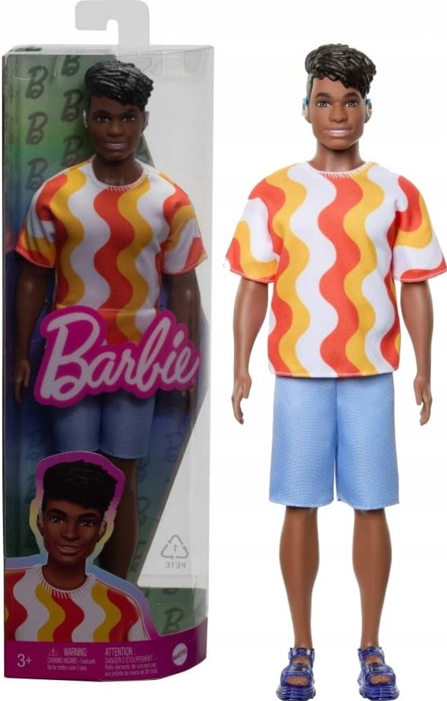 Balení obsahuje panenku Modela Kena oblečeného do svých oblečků a bot.