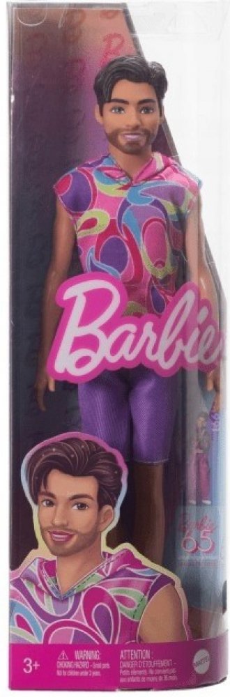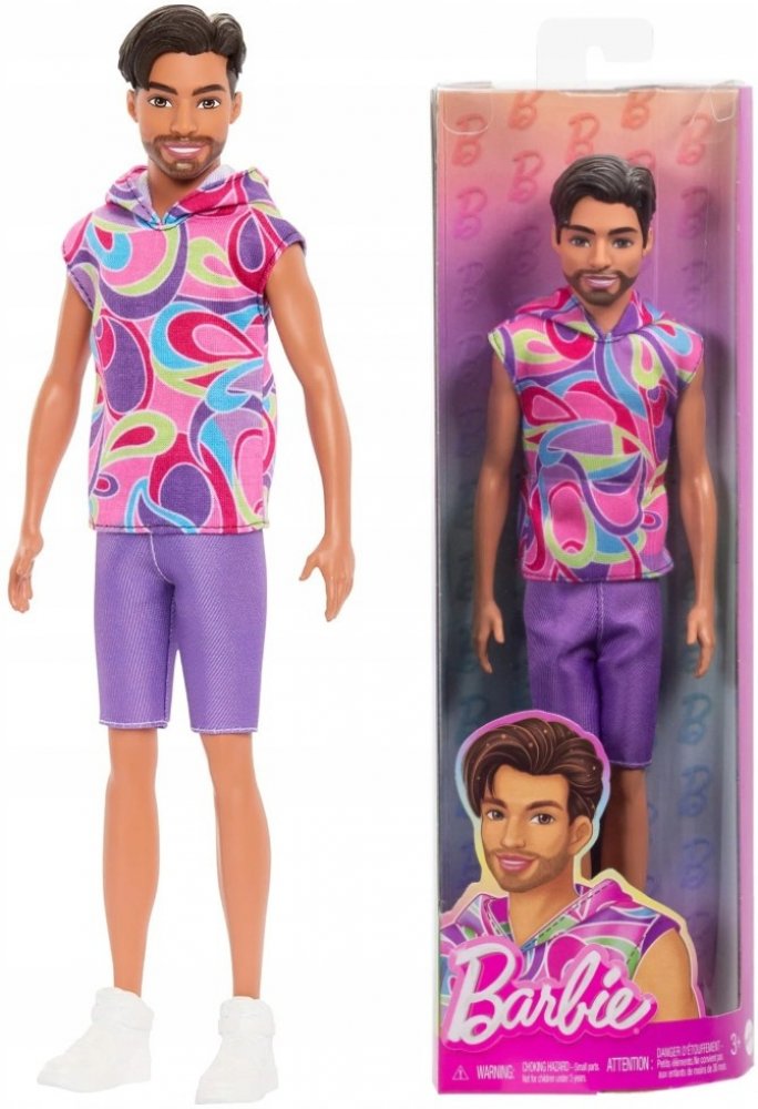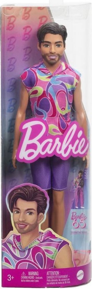 Balení obsahuje panenku Modela Kena oblečeného do svých oblečků a bot.