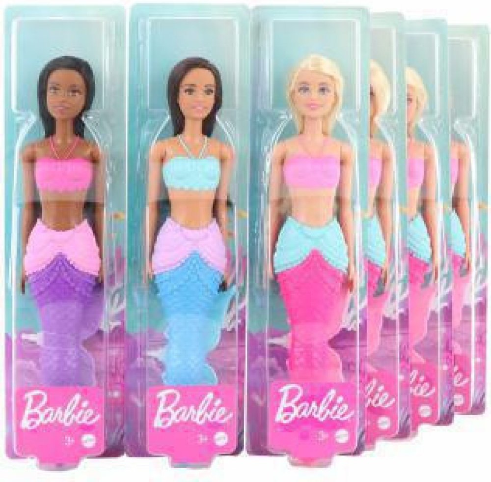 Panenky Barbie™ Mořská panna ze světa Dreamtopia inspirují děti, aby se ponořily do vyprávění příběhů se zábavným vzhledem plným fantazie! Panenky Barbie™ Mořská panna ze světa Dreamtopia inspirují děti, aby se ponořily do vyprávění příběhů se zábavným vzhledem plným fantazie! Každá panenka Barbie® mořská panna má živůtek a ocas v odstínech fialové, růžové nebo modré s detaily inspirovanými mořem, které jsou tematicky zaměřeny na drahokamy a mušle. Prodávají se samostatně dle aktuální skladové zásoby. Uvedená cena je za 1 ks. Panenky neumí samostatně stát nebo plavat. Barvy a vzhled výrobku se mohou lišit. Věk 3+.