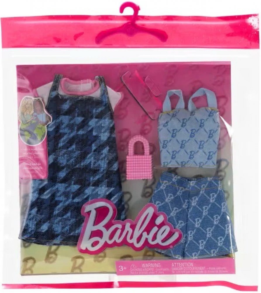 Barbie Oblečení + doplňky 2-pack Barbie je vždy připravena přijmout novou výzvu a má šatník, který drží krok s jejími vášněmi! V tomto dvojbalení najdeš dva kompletní outfity pro Barbie s oblečením a doplňky, díky kterým bude módní zábava dvojnásobná (panenka se prodává samostatně). K dispozici jsou šaty, saka, košile, sukně a kalhoty a dva přiložené doplňky pomohou dotvořit styling. Libovolně je kombinuj v rámci sady i s dalšími sadami z řady a vytvářej tak originální kombinace a objevuj svůj vlastní styl. Součástí balení jsou dva oblečky a dva doplňky; panenka není součástí balení. Oblečky mají univerzální střih, aby padly většině panenek Barbie. Každá sada oblečků se prodává samostatně v závislosti na dostupnosti. Barvy a ozdobné prvky se mohou lišit..