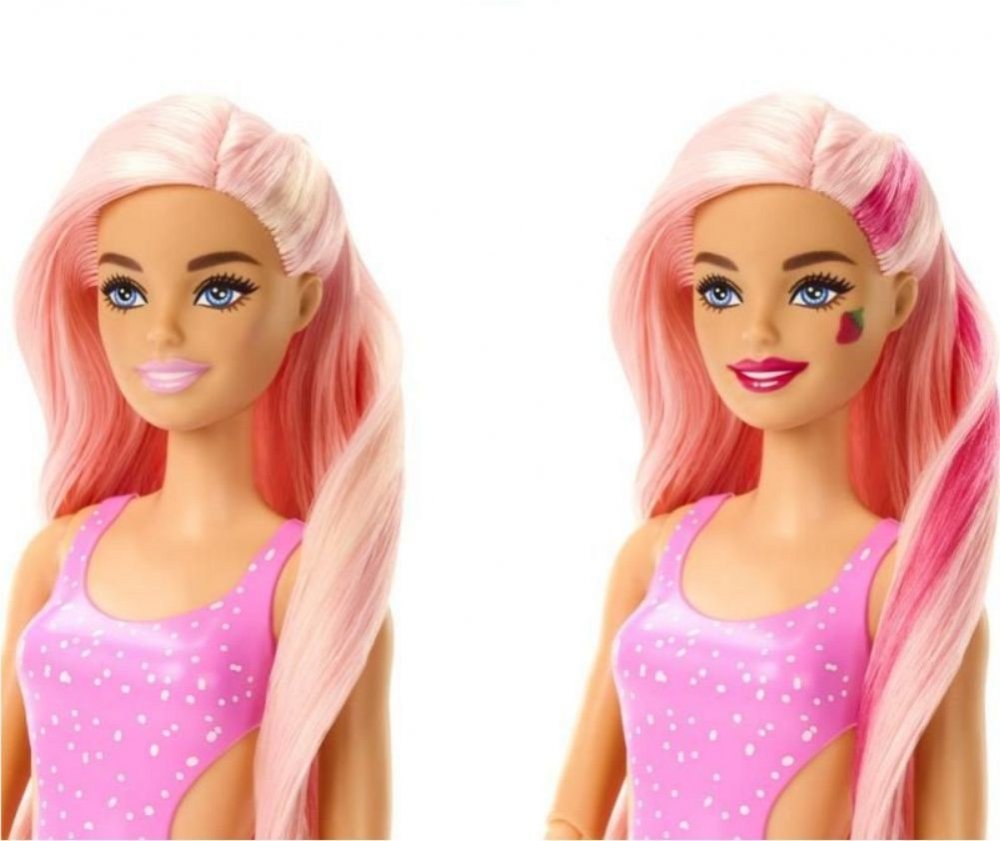 Panenka Barbie® Pop Reveal™ potěší děti tematikou šťavnatého ovoce a novým zážitkem při rozbalování, kdy pomocí slizu odhalí překvapení, mezi něž patří panenka Barbie® s vůní ovoce a kostky ledu, které při prasknutí odhalí další překvapení. Set obsahuje heboučké voňavé zvířátko, tematické doplňky a hru se změnou barev. Všechny čtyři panenky z edice Pop Reveal™ Šťavnaté ovoce se liší vzhledem, druhem ovoce a barevným provedením, a i s doplňky jsou skryté v limonádových kelímcích s víčkem. Panenky se prodávají zvlášť v závislosti na dostupnosti. Panenka nemůže stát samostatně. Barvy a provedení dekorací se mohou lišit. Panenka Barbie® Pop Reveal™ potěší děti tematikou šťavnatého ovoce a novým zážitkem při rozbalování, kdy pomocí slizu odhalí překvapení, mezi něž patří panenka Barbie® s vůní ovoce a kostky ledu, které při prasknutí odhalí další překvapení. Set obsahuje heboučké voňavé zvířátko, tematické doplňky a hru se změnou barev. Všechny čtyři panenky z edice Pop Reveal™ Šťavnaté ovoce se liší vzhledem, druhem ovoce a barevným provedením, a i s doplňky jsou skryté v limonádových kelímcích s víčkem. Panenky se prodávají zvlášť v závislosti na dostupnosti. Panenka nemůže stát samostatně. Barvy a provedení dekorací se mohou lišit.