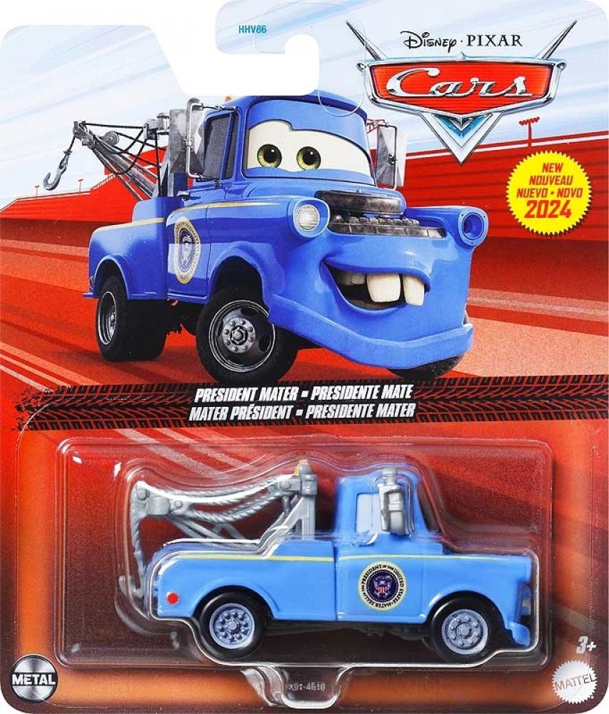 Kovový model autíčka z filmu CARS (Auta) - Mater (Burák), tentokrát v prezidentských barvách. Sir Tow Mater, více známý pouze jako Tow Mater nebo Mater (Burák), je jednou z hlavních postav ve filmu CARS (Auta). Jde o model 1955 Chevrolet Tow Truck. Jeho nejlepším přítelem je Lightning McQueen (Blesk McQueen). Jedním z největších Burákových koníčků jsou jeho noční výlety na pole, kde převrací trakt...