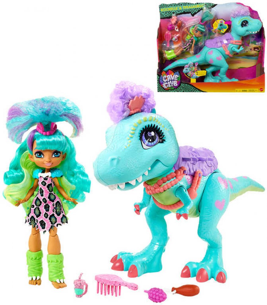 Mattel Cave Club Set Rochelle a dinosaurus T-Rex s doplňky